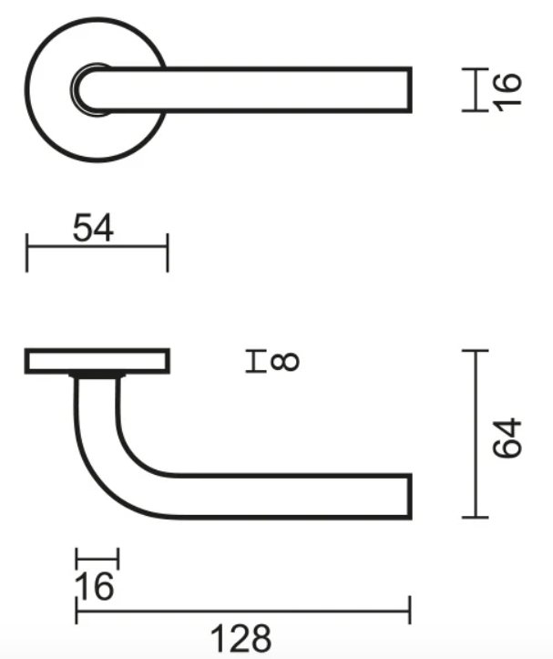 Les poignées de porte sont fournies sous forme d’un ensemble complet comprenant des plaques de clé, une tige carrée (8×8 mm) et des matériaux de montage. Les fixations conviennent aux épaisseurs de porte de 38 à 44 mm.